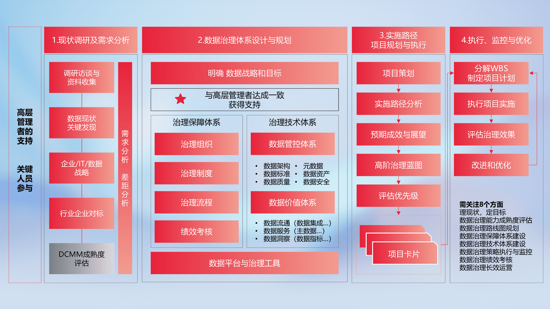 制定并执行统一的数据标准,,,,规范数据定义和格式,,消除冗余和不一致性,,,,实现跨部门和跨系统的数据一致性,,为企业提供标准化的数据基础。。。。